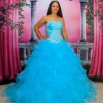 Vestido azul real con top de pedrería y caída de bola con lentejuelas